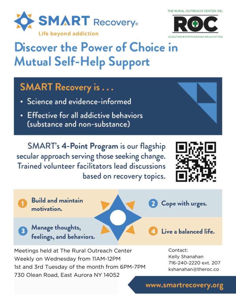 Come join us for our SMART Recovery support group. We can help rebuild our lives after the devastation of substance use in our homes. Anyone affected by substance use is welcome to attend meetings.